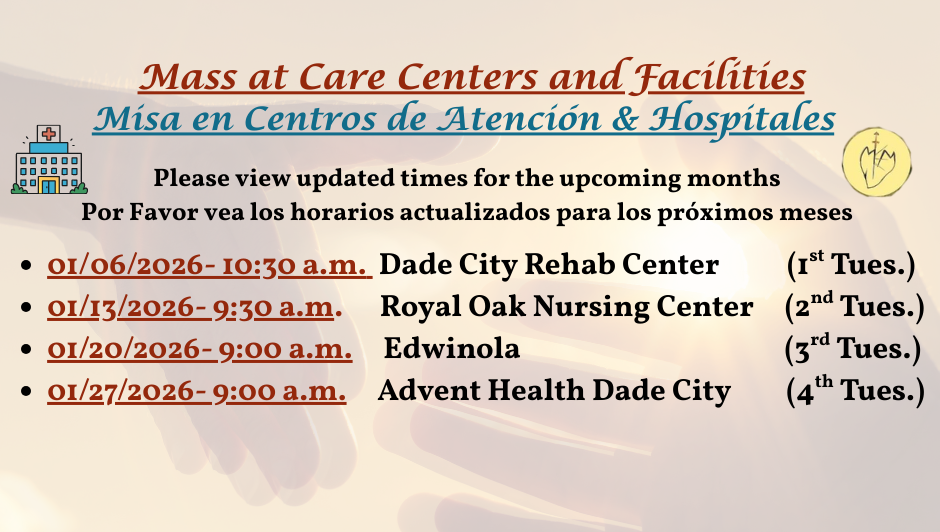 Unable to attend Mass in person? Watch live-streamed Mass through our Facebook page